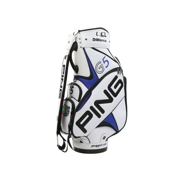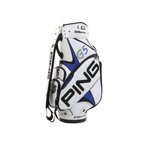 多くのツアー勝利を挙げたChris Dimarco選手は、Augusta 23 1968Y New York生まれです。University of Florida出身で1990Yプロ入りしました。2004Y全米プロ優勝、2005Yマスターズ優勝、2004Y全英OPENでは優勝を争い2位と活躍しました。バッグ前面に刺繍された「 Heathrow Country Club」はPGAツアー開催コースでもあり、Chris Dimarco選手のホームコース。背面に刺繍されたアリーゲータはUniversity of Floridaのマスコットマークはプロ入り後も使用し続けました。一般販売されていなメーカー保存品です。